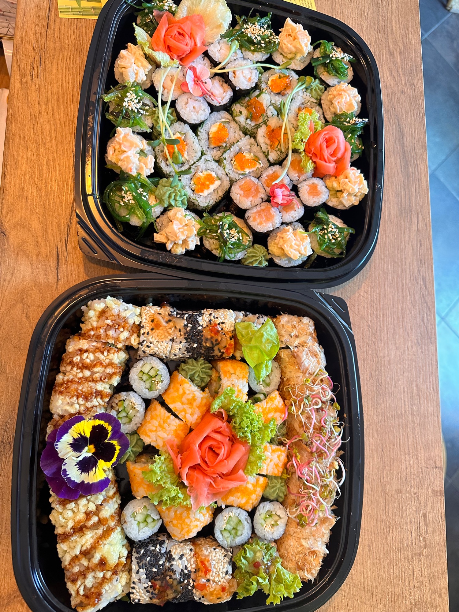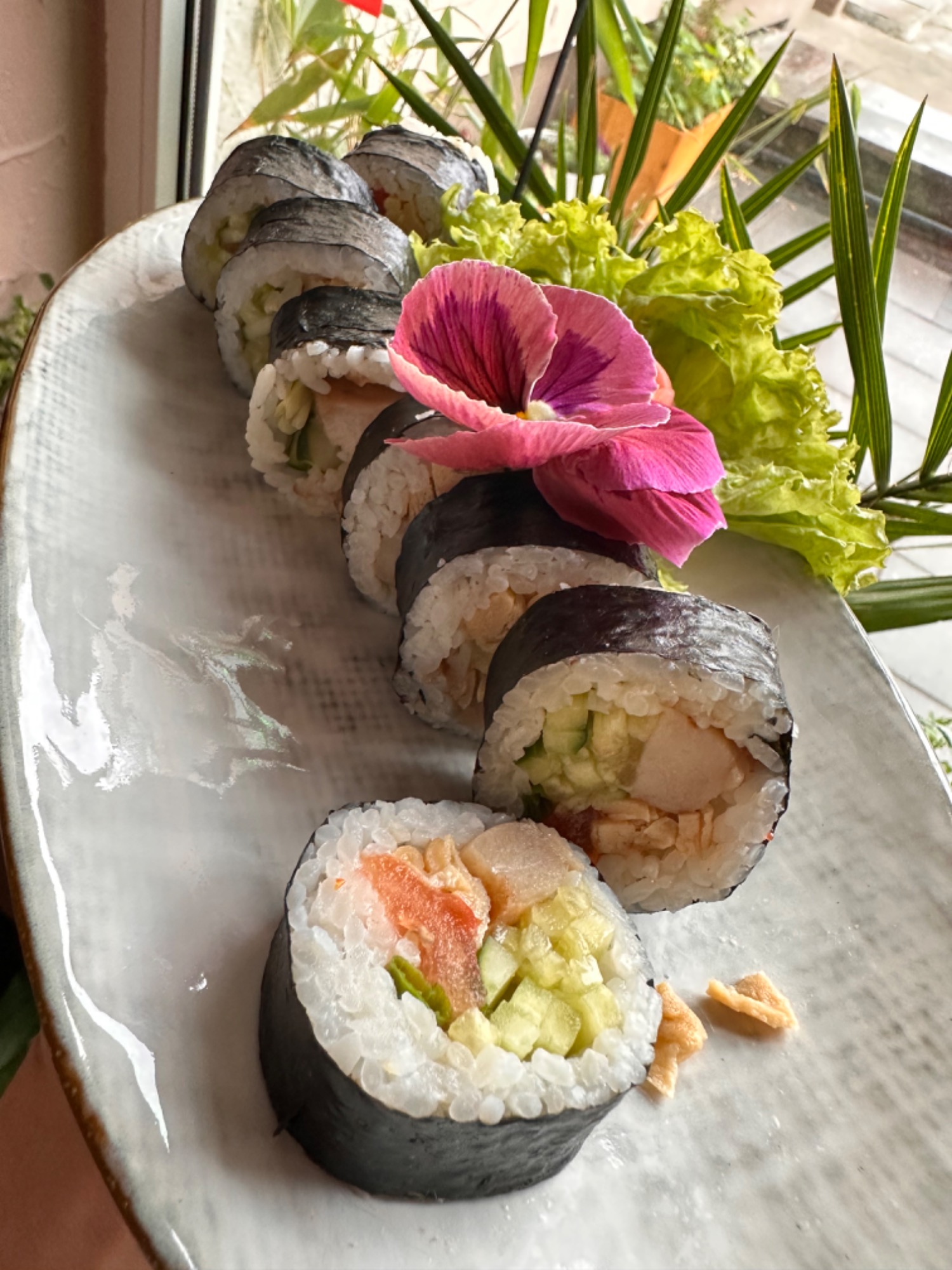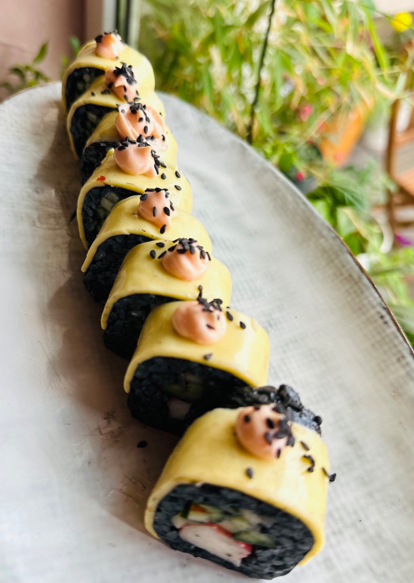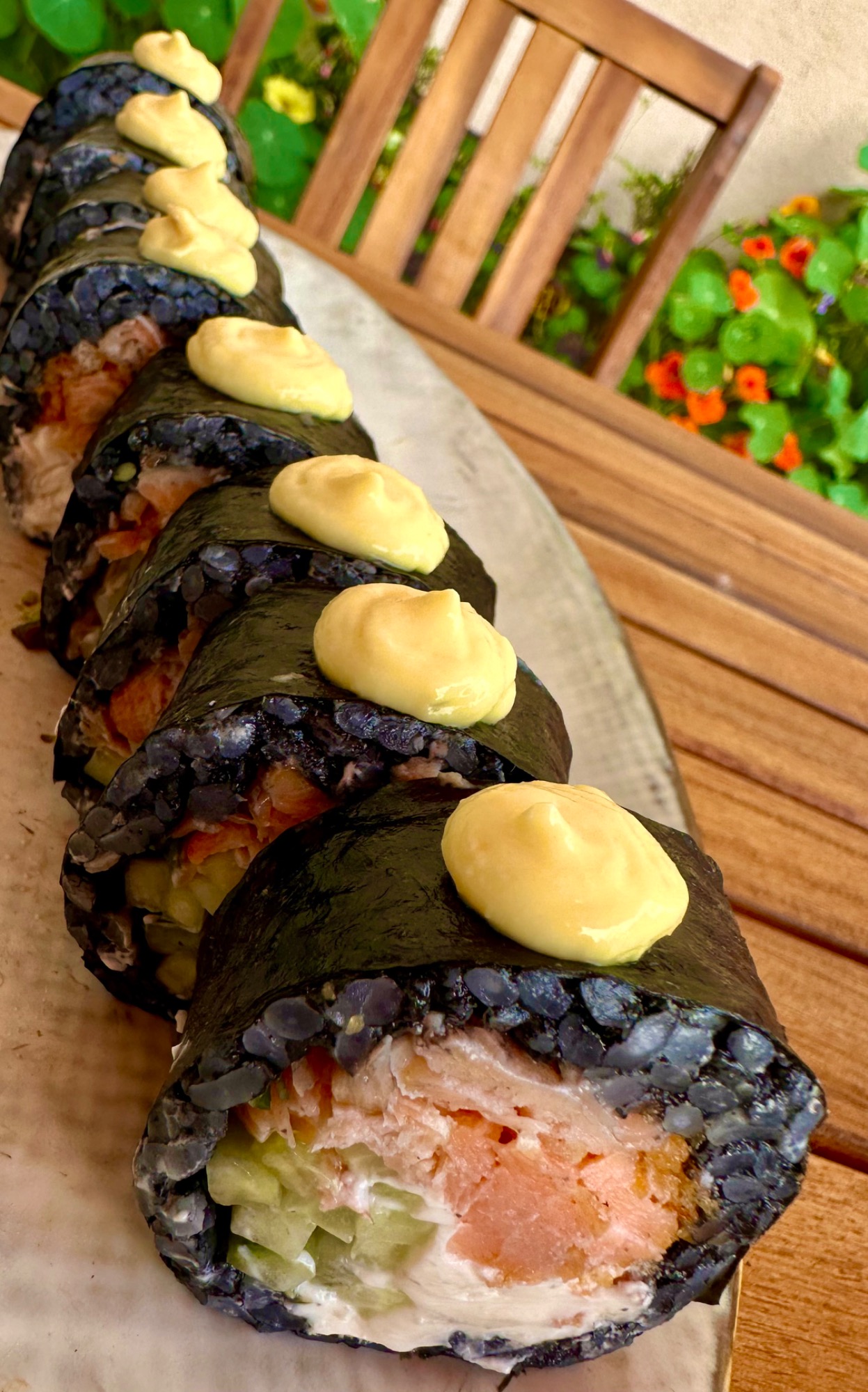 Rolki zwijane odwrotnie czyli z ryżem na zewnątrz nori w środku z kilkoma składnikami