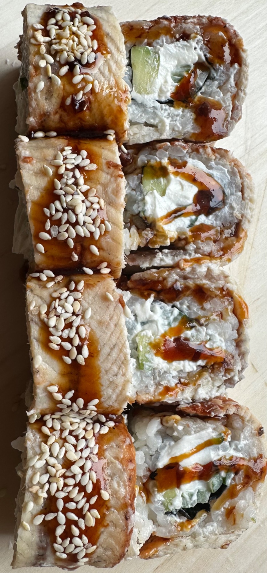Tuńczyk, ogórek, serek śmietankowy, awokado, unagi -